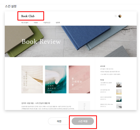 그중 반응형에 나중에 목록에 광고가 나올수 있는 반응형, 목록광고지원을 하는 Book Club을 선택하시는게 좋습니다.