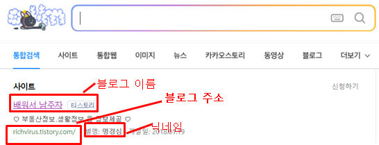 돈버는 블로그 정보 검색창에서 위처럼 나타나게 됩니다.