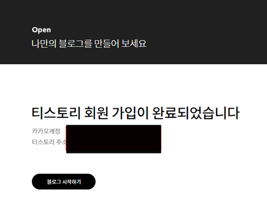 다음 검색창에서 티스토리 눌러 들어가면 위 화면이 보이면 우측 위 시작하기 누릅니다.